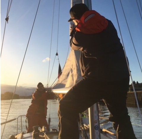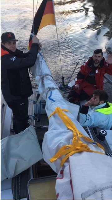 Nach ein paar holprigen Wendemanövern spielte sich das Team schnell ein. In der Kreuz bei ca. 3 Beaufort ging es in Richtung BHV. Nach einer guten Stunde kreuzen wurde auf der Rücktour bei Vorwindkurs der Spinnacker gelüftet. In höhe der Einfahrt zur Lesum schlief der Wind ein und so ging es dann gegen das ablaufende Wasser unter Maschine Richtung Heimathafen Segelverein Burg e.V. Bei einem „Festmacher-Bierchen“ und warmer Heizung wurden im Bootshaus die guten und schlechten Manöver ausgiebig diskutiert.